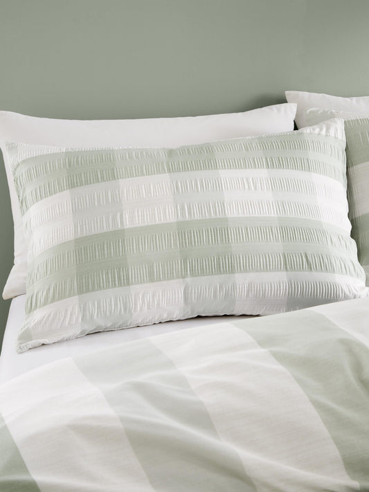 Gingham Check Seersucker Duvet Set, Green.