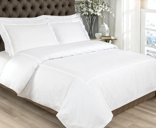 Opulence 300 TC Sateen Cotton Double Row Cord Duvet Sets, White Detailing