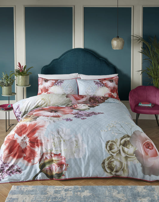 Mayfair Lady 100% Cotton Duvet Set, Blue Reduced to Clear