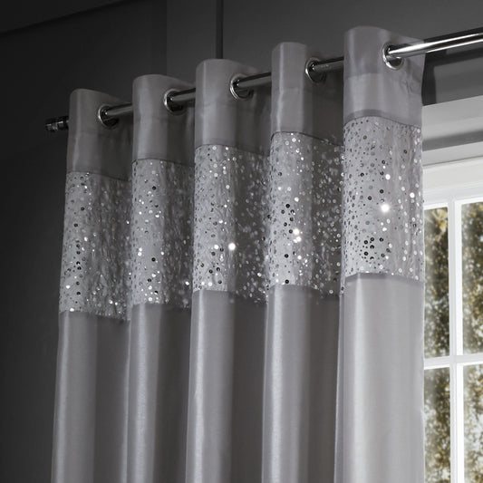 Glitzy Grey Ring Top Curtains from Catherine Lansfield-FINAL CLEARANCE PRICE