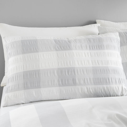 Gingham Check Seersucker Duvet Set, Silver.SALE