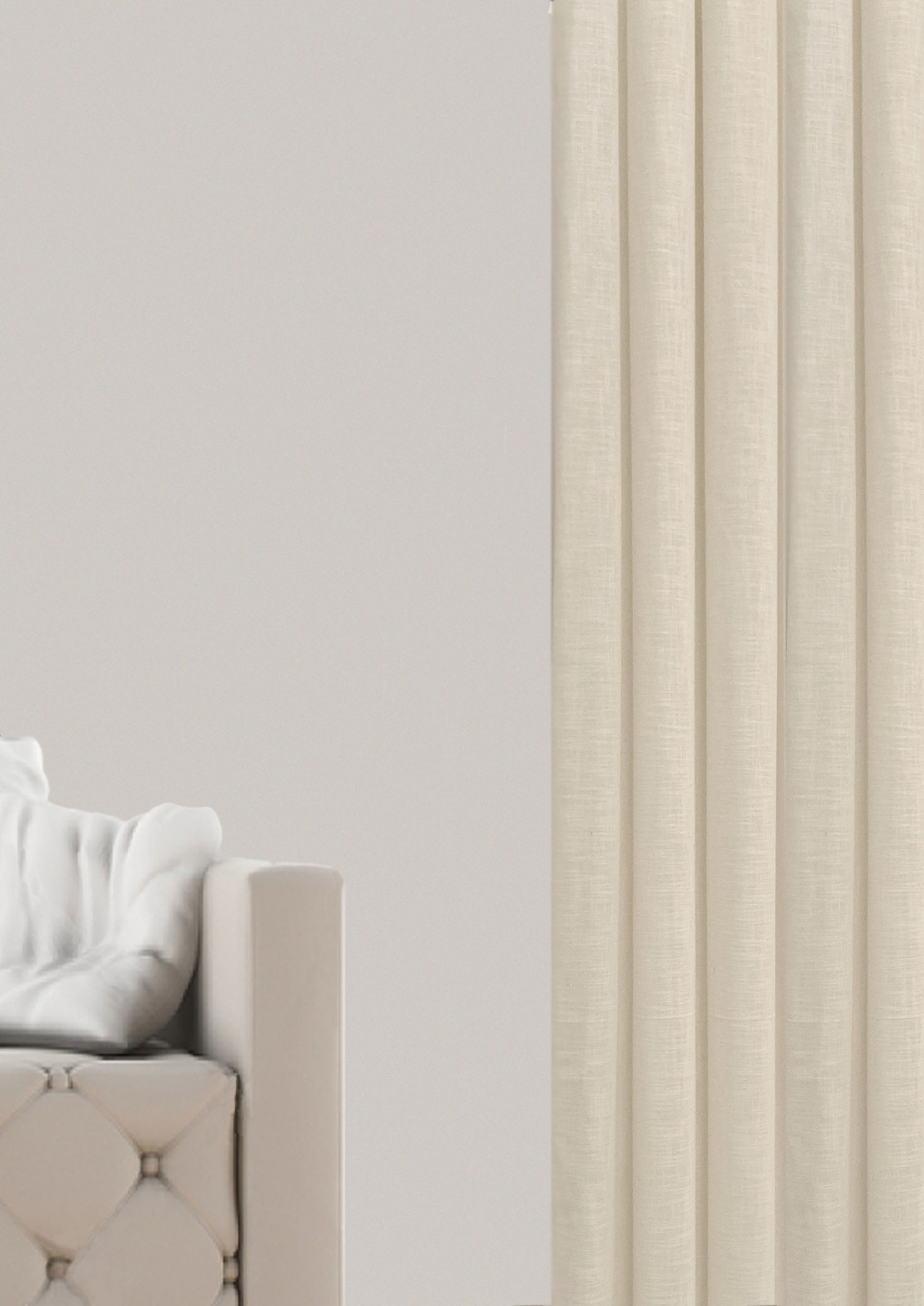 Jade Linen Look Heading Tape Voile Panels, Ivory. These linen-style voiles on heading tape are a great addition to our range! The fabric has a decent weight and hangs very well. Available in a multitude of 'on-trend' colours and in three widths: 140cm, 200cm and 300cm widths. The overall length of all the panels is 280cm and each panel comes with iron-on thermos adhesive tape if you wish to shorten them with out sewing.