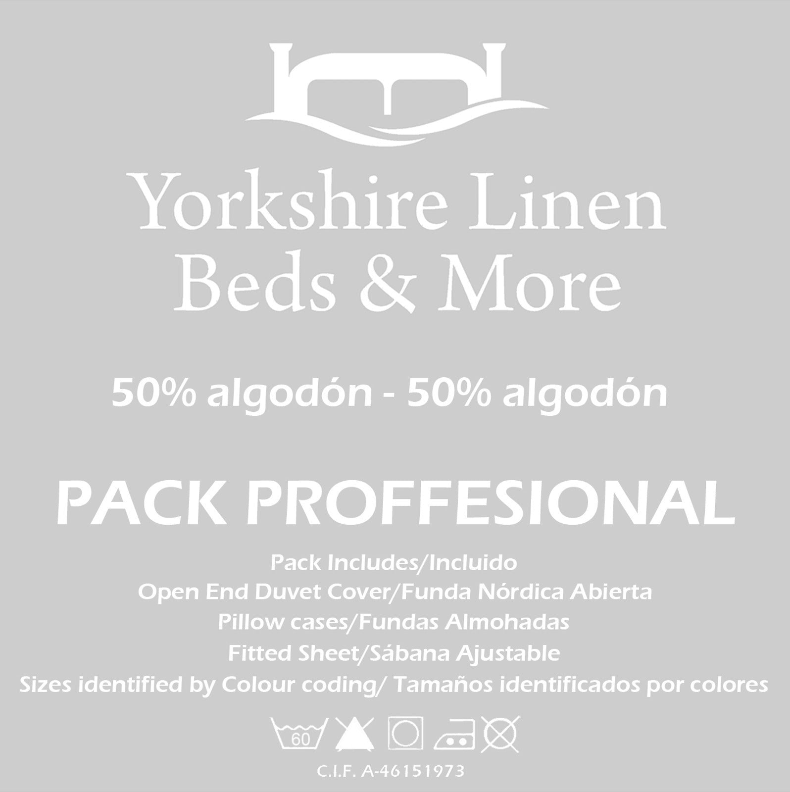 Pack Professional Bedding Sets, Poly/Cotton. These EASY CARE bedding sets have been designed and produced for our professional customers needs in mind when renting out out holiday homes. Set contains a fitted sheet of 27cm depth, duvet cover and pillowcases of 50x75cm.
