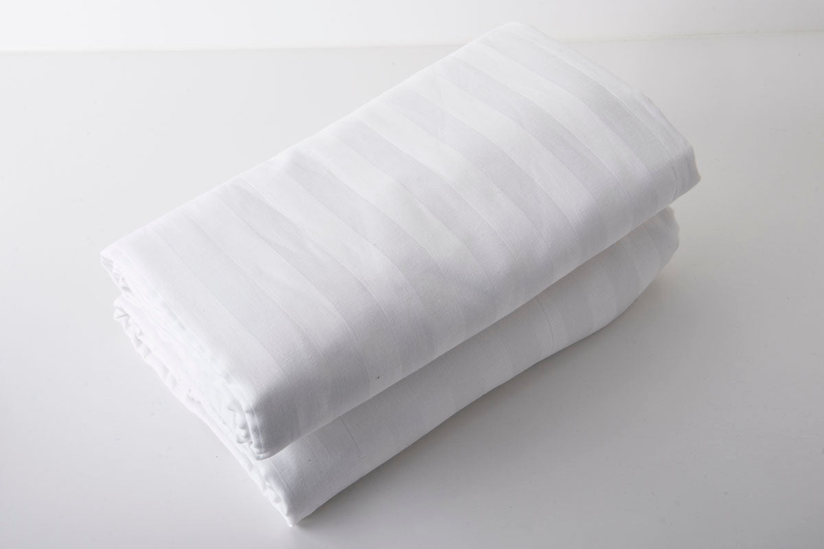 These cotton rich duvet sets feel soft and luxurious withthe added bonus of being easy care ! Featuring a hotel style , satin stripe design . Sets include pillowcases of 50 x 75 cm ( One pillowcase in a single and two in all other sizes
